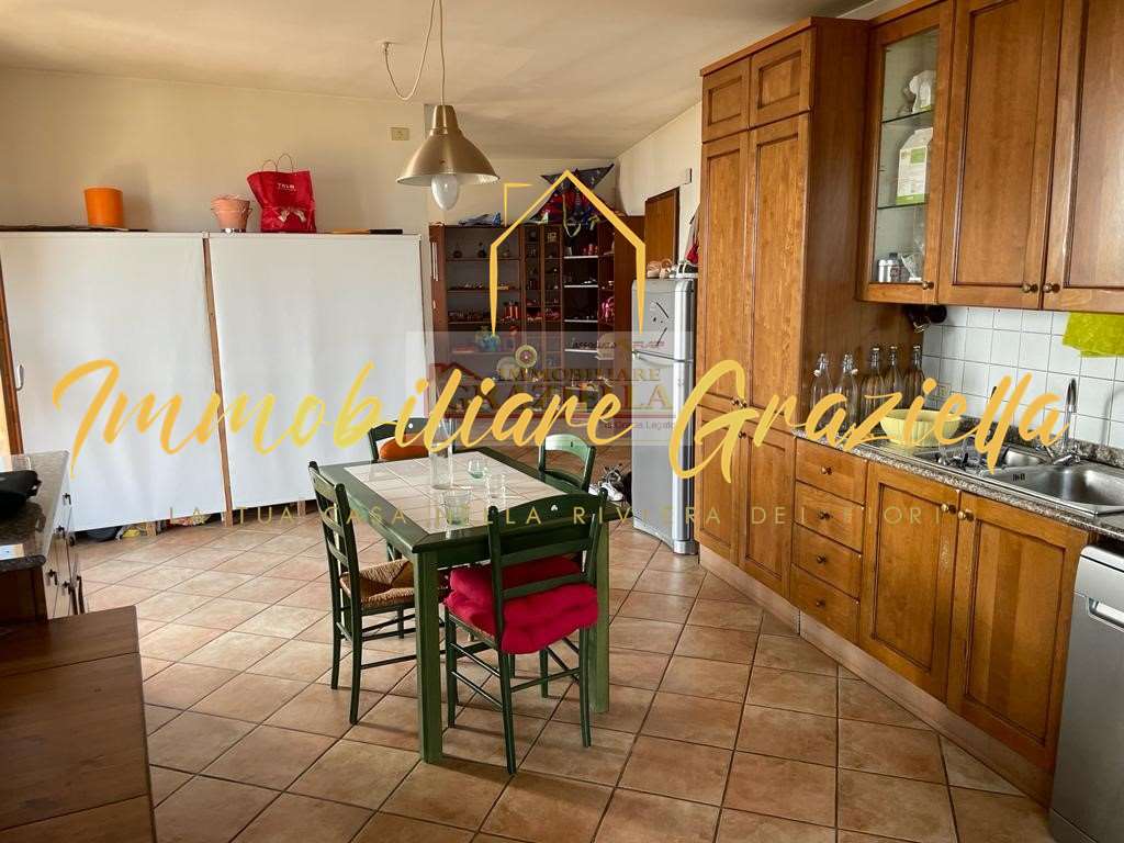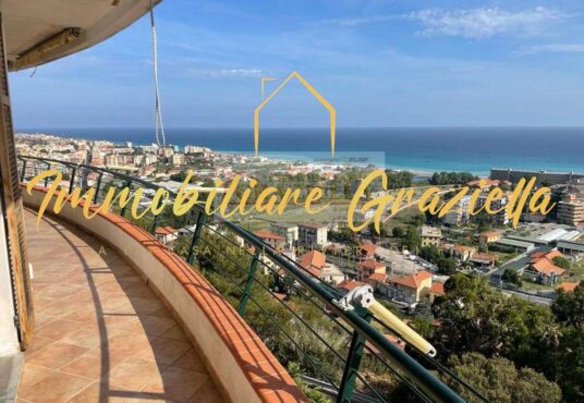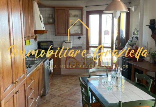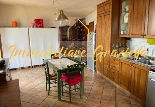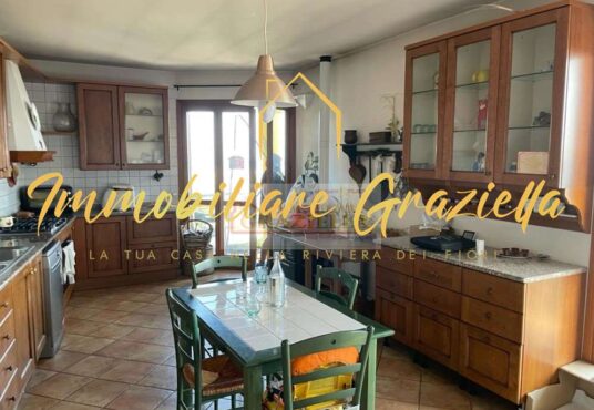 Appartamento in casa indipendente, di circa 120 m2, composto da: 3 camere da letto, 2 bagni, soggiorno con camino, ampia cucina e terrazzo perimetrale con stupenda vista mare.